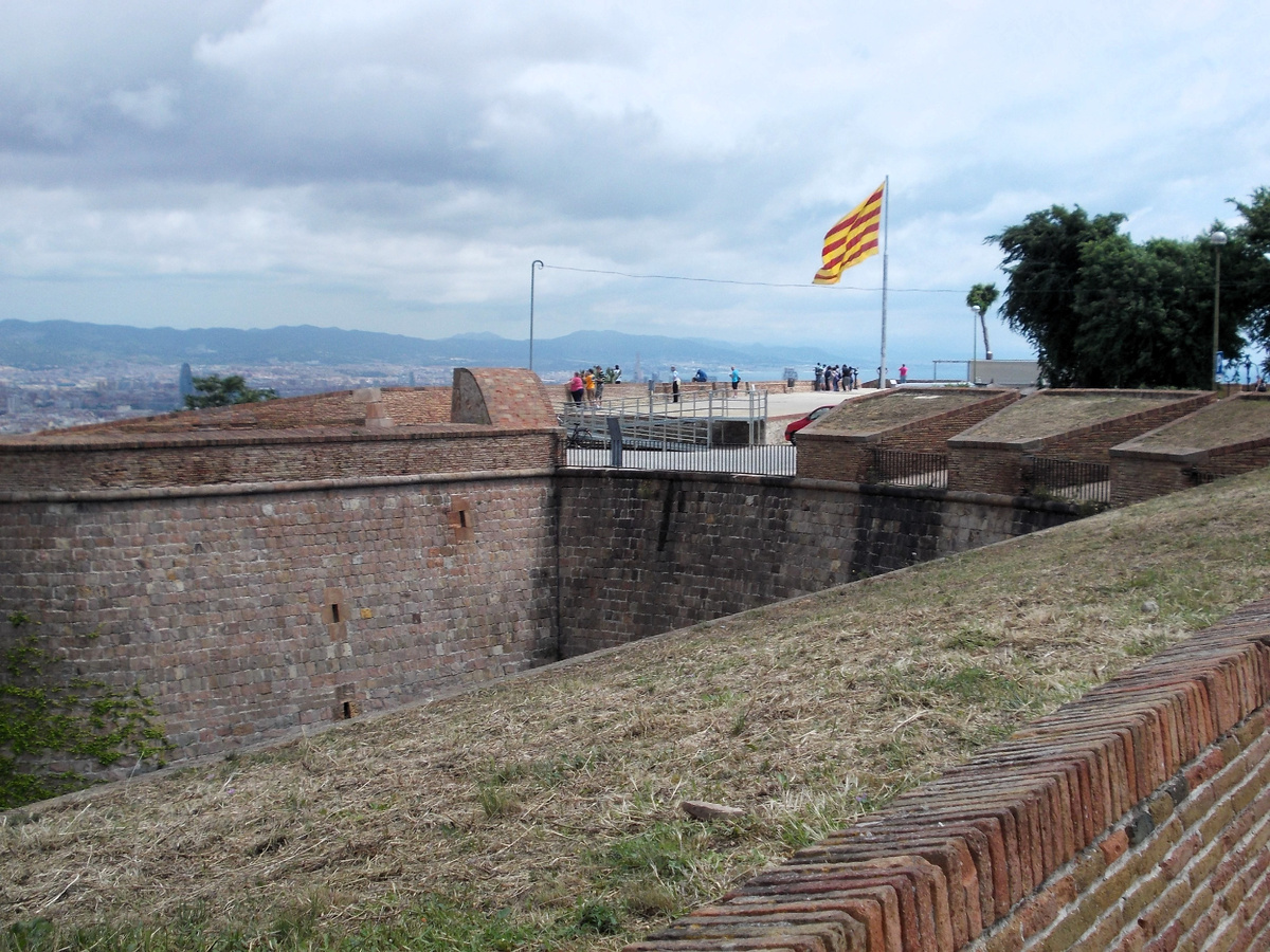 В крепость можно доехать на фуникулере. Крепость Монжуик — фортификационное сооружение на горе Монжуик, в черте города Барселона, одна из важнейших исторических достопримечательностей города. Первоначально на этом месте находилась сторожевая башня. Современная крепость появилась в 1640 году, во время восстания каталонцев против Габсбургов. В начале войны за испанское наследство (1705) захвачена англичанами, через год отвоёвана испанцами. Пушки перед крепостью. Отсюда хорошо видно порт Барселоны. Вид с моста входного в крепость. В середине XVIII века крепость была реконструирована по проекту Хуана Мартино Керменьо.