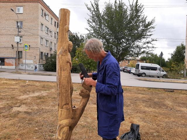 Валерий Евгеньевич не скрывал: сам сталинградец, дед погиб при обороне родного города, а сам скульптор знает о своем материале немало, потому что работал с деревом почти 50 лет.
