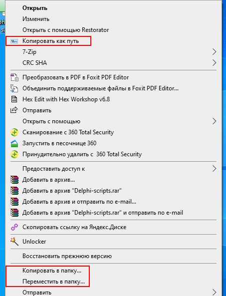 При нажатии кнопки Shift и щелчке ПКМ на файле (папке) в контекстном меню видите ли, появляется дополнительная опция «Копировать как путь». Прям не опция, а подарок какой-то! Но нам нужно нормальное контекстное меню без всяких Shift-ов, поэтому попробуем его сделать.