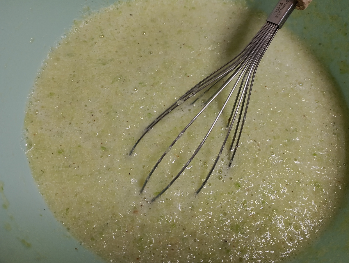 Кабачок измельчить блендером (или пропустить через мясорубку).