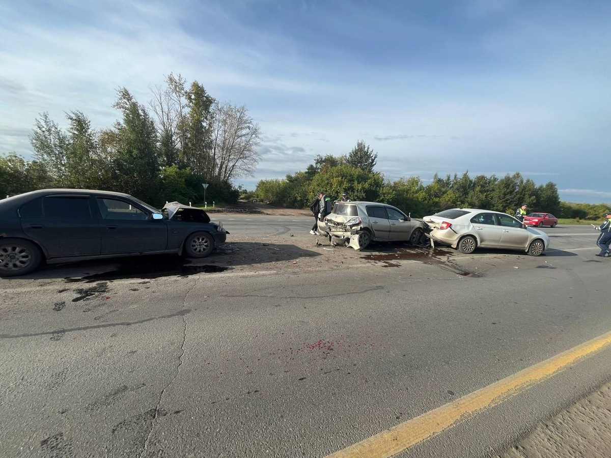 В четверг, 4 сентября, в Омской области произошло ДТП. Сообщение об аварии поступило в в дежурную часть ОМВД России по Омскому району в 8:00. Инцидент произошёл на 609-м километре трассы Тюмень-Омск. Предварительно установлено, что 37-летняя женщина, управлявшая «Хондой Рафага» столкнулась со стоящей «Рено Меган». За рулём машины находилась 42-летняя женщина. Та в свою очередь въехала в автомобиль «Шкода Рапид». Его водителем оказалась 34-летняя женщина. В результате ДТП медицинская помощь понадобилась водителям всех трёх иномарок, а также 65-летнему пассажиру «Рено».