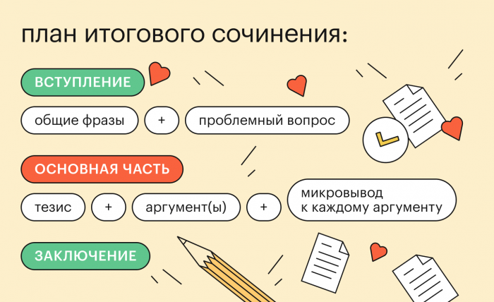 У меня была статья с подробной инструкцией как подготовиться к написанию: https://dzen.ru/a/ZzY2PCWaZDXr7eWJ Также есть удобный список коротких рассказов, с которыми можно быстро ознакомиться и использовать их в качестве аргументов: https://dzen.ru/a/ZlRAYH4_qXGTpaM_ 1. Структура сочинения простая и понятная. Не перегружайте. Делите вашу работу на 4 абзаца: вступление-1 аргумент-2 аргумент-заключение. Не придумывайте лишнего... 2. ЗОЛОТОЕ ПРАВИЛО: сначала выбираем примеры-аргументы под тему, а уже под них подстраиваем свой тезис и вывод. Не наоборот! Нет, вы не ослышались, не наоборот! Выбираем те произведения, которые лучше помним. Думаем, как их можно использовать в качестве примеров. Дальше анализируем, что показывают нам эти примеры, как раскрывают тему. И формируем тезис.