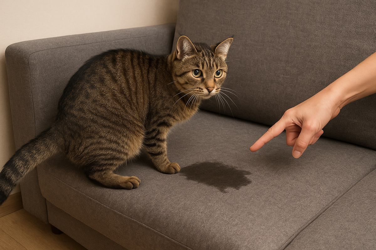 Наказания и крики только усиливают стресс, а значит — и желание метить. Кот не понимает связи между вашим недовольством и своим поведением, произошедшим несколько часов назад.
