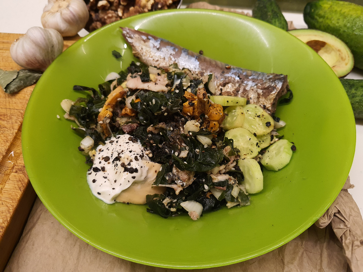 Каждую пятницу публикую лучшее из того, что в действительности было приготовлено в продолжение прошедшей недели. 1. Вакаме-салат с огурцом, авокадо и лисичками. Скумбрия. 2. Салат с огурцом, авокадо, скумбрией и ореховой заправкой 3. "Бородинские" кето-хлебцы с яйцом, авокадо и лисичками. Нектарин. 4. Тыквенный суп с кальмаром 5. Тыквенный брауни 6. Салат со свеклой и козьим творогом 7. Вафли из кабачка с козьим творогом и зеленью. Дыня. 8. Стручковая фасоль по-флотски с горбушей + болгарский перец 9. Салат со свежим и вяленым томатом, авокадо и лисичками. Скумбрия. 10. Козий творог с грушей и ягодами Пишу о спорте, питании, тренировках и здоровом образе жизни в целом. Присоединяйтесь.