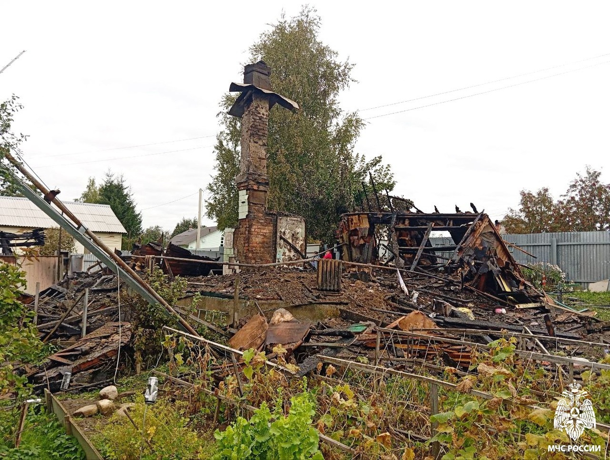 Пожар ликвидировали 6 специалистов на двух автоцистернах. При разборе и проливке конструкций было обнаружено тело 90-летней женщины.