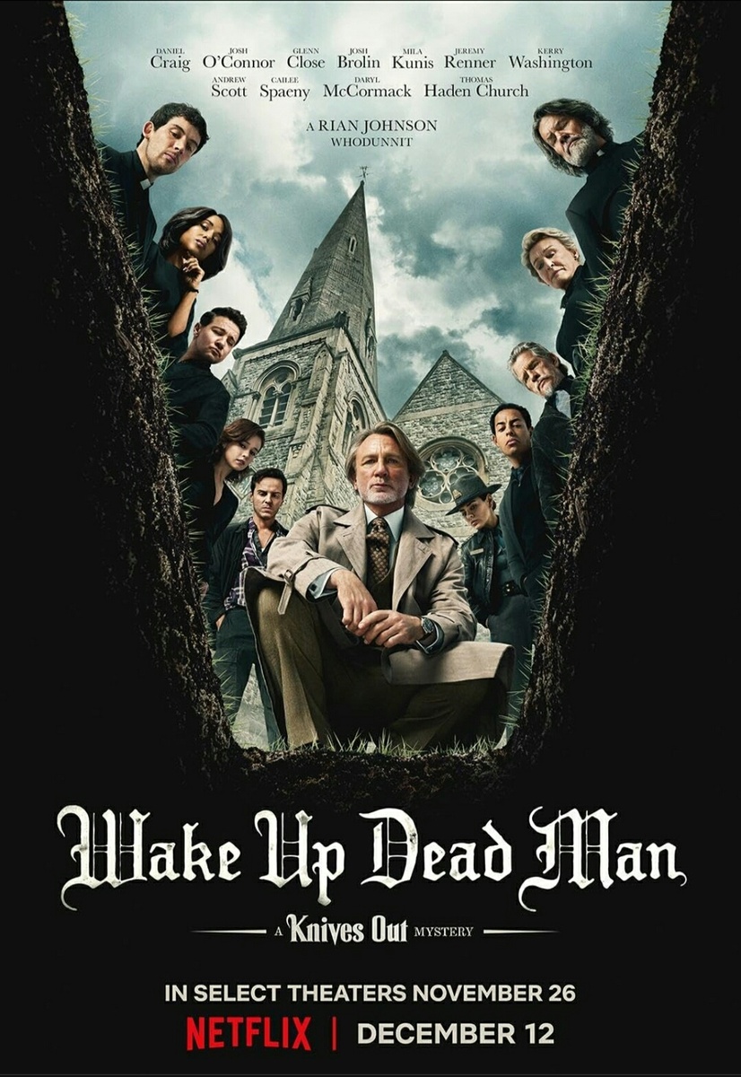 Третья часть приключений детектива Бенуа Бланка (Дэниел Крэйг) получила подзаголовок "Проснись, мертвец". Сначала у ленты будет ограниченный прокат, а с 12 декабря она будет доступна на торрентах Netflix. А ещё постер подогнали: