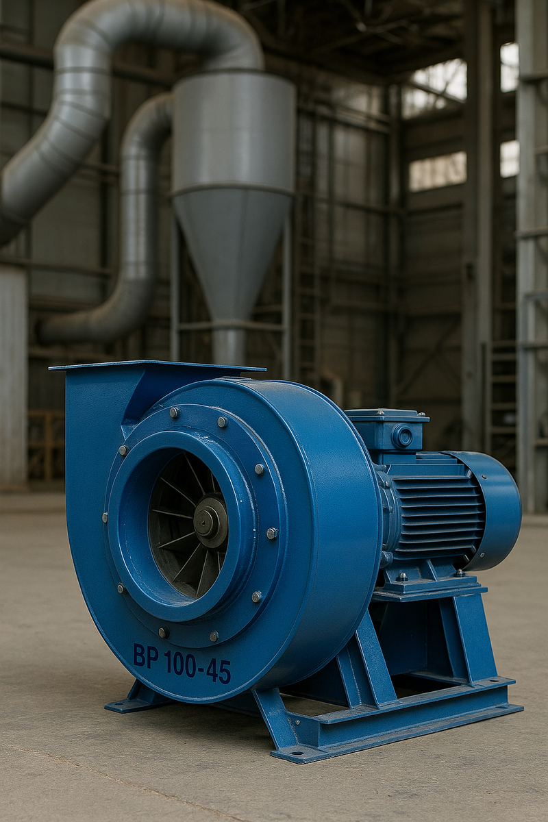 Ключевым элементом таких систем являются промышленные вентиляторы. Среди них особое место занимает вентилятор ВР 100-45 — надёжное и проверенное решение для транспортировки пылевоздушных смесей. Правильно подобранный вентилятор обеспечивает стабильную работу фильтров и циклонов, снижает энергозатраты и увеличивает эффективность всего производства. Вентилятор ВР 100-45 выполняет важнейшие функции: Преимущества применения: Вентилятор ВР 100-45 относится к категории радиальных среднедавленных. Его конструкция включает прочный корпус, рабочее колесо с изогнутыми лопатками и усиленные подшипниковые узлы, обеспечивающие долгий срок службы. Часто ВР 100-45 сравнивают с вентиляторами ВЦ 5-35. При близкой производит