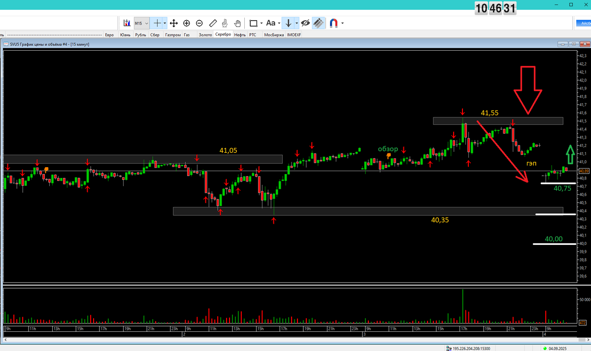 Как вчера и ожидалось в утреннем видео-обзоре https://t.me/treydingnenaslovah/3471, рынок сперва подрос ещё выше, придя к уровню 41,55, здесь снова прошли активные продажи, а сегодня открылся гэпом вниз — в зону 40,70 Сейчас тут в большей степени проходит бычья ликвидность, поэтому вполне вероятно, что это гэп в ближайшее время будет перекрыт. Также не исключаю, что рынок снова попытается обновить локальное сопротивление 41,55 В то же время, в целом фон продолжает оставаться медвежьим, а значит работать от лонга по-прежнему небезопасно В этом контексте, первая потенциальная цель в краткосрочной перспективе - уровень 40,75 👉 Предыдущий пост https://t.me/treydingnenaslovah/3429 #SILV #SVU5 #Silver #SV1
