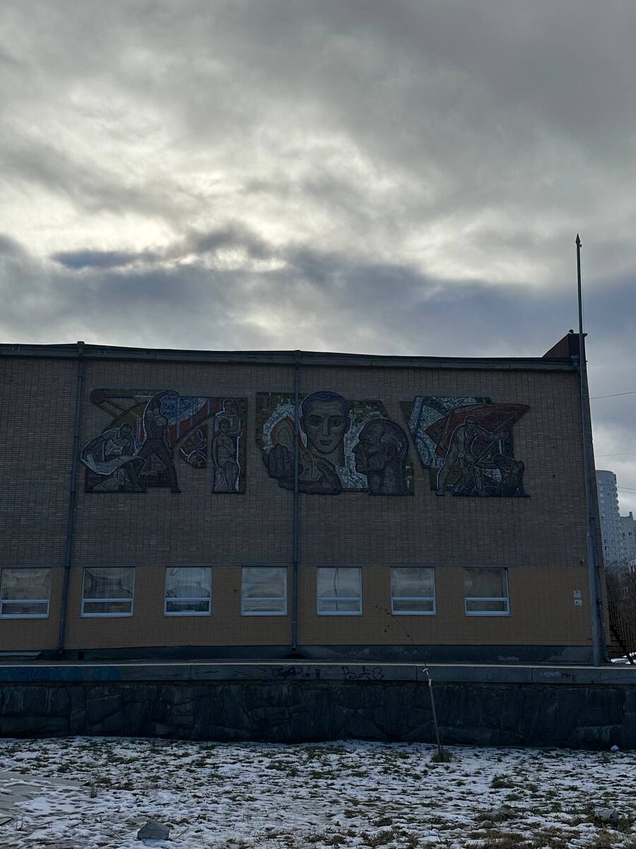 Екатеринбург. Мозаика на ДК Лаврова. Последний штрих из района Уралмаша. Практически на выезде из него по проспекту космонавтов расположен ДК Лаврова. Само здание конца 60-х, без излишеств. Единственное украшение — мозаика "Советский Свердловск". Триптих о науке, ученье, труде и, конечно, о смысле жизни — борьбе. Особенно интересен синеволосый советский Прометей, подаривший людям огонь. 📱 Архитекстура #Екатеринбург