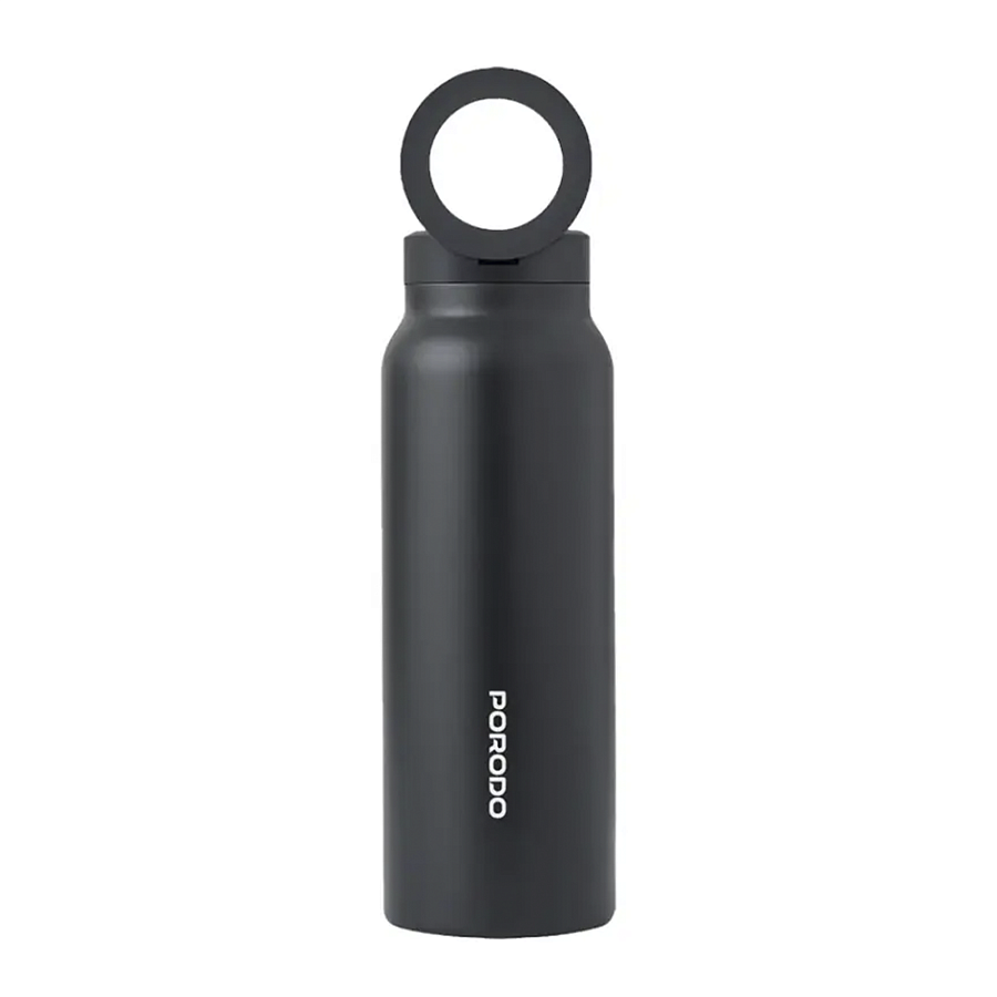 Когда технология встречается с жаждой — рождается Porodo Lifestyle. Бутылка, которая умеет держать не только температуру, но и ваш телефон. Да-да, это не шутка. Здесь всё продумано: от термоса до MagSafe, от офиса до спортзала. Особенности — Совместима с MagSafe — можно примагнитить iPhone прямо к корпусу бутылки. Освобождает руки, не мешает жизни, помогает удобно расположить телефон, пока занимаешься под рилсы своего тренера. — Двойные изолированные стенки — держат напиток горячим до 12 часов, а холодным — до 24. Идеально для кофе в 9 утра и холодной воды на пробежке в 19:00. — Объём — 700 мл. Приличный объём: хватает и не утяжеляет. — Встроенная трубочка и носик с защитой от проливания — чтобы пить на ходу, в зале, на колёсах, в ритме дня. — Устойчивая база — стоит уверенно и когда полная, и когда пустая. Как вы после двух сеансов психотерапии. Для кого? Для тех, кто не выбирает между стилем и практичностью. Для тех, кто хочет пить воду — с умом, комфортом и магией. Для офисных