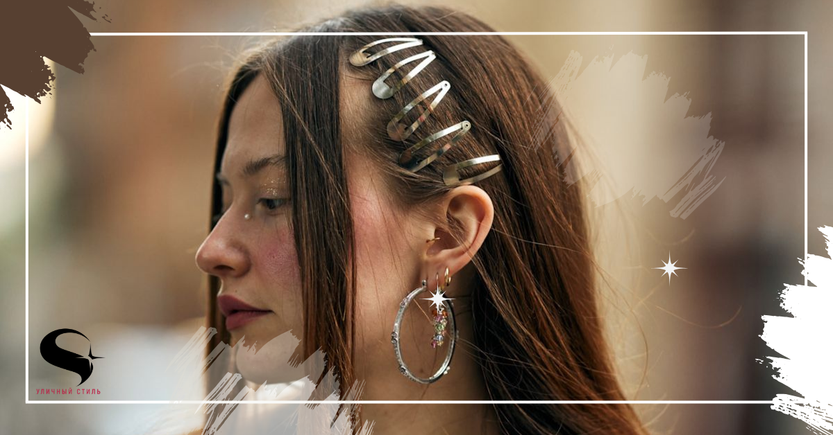В стильных образах уличной моды ведущую роль играют простые, но практичные аксессуары для волос. В данном случае металлические заколки украшают гладкие хвосты, элегантные низкие прически, косы и волнистые причёски.