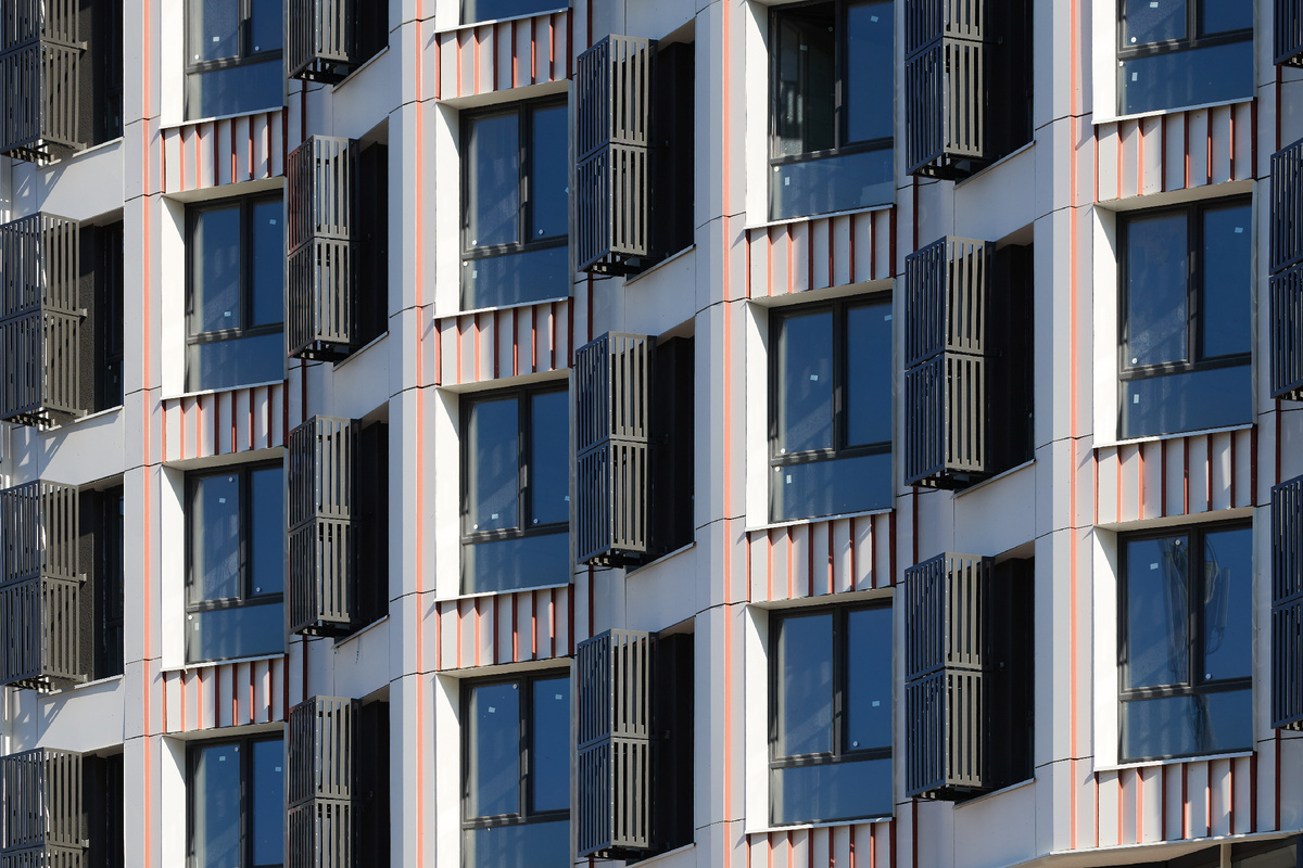 Для «HighWay» архитекторами разработан современный проект. В него входит сложная конфигурация пяти корпусов разной высоты (от 3 до 23 этажей) с фасадами, характерными для городских апартаментов — с большим количеством металла и стекла. Динамика разновысотных корпусов объединена в общий ансамбль стилобатом. Для фасадов выбраны контрастные цвета — серый, белый, чёрный и красный. В облицовке использован навесной вентилируемый фасад из алюминиевых композитных панелей SIBALUX. Согласно задумке архитекторов на объекте смонтированы оригинальные рельефные фасады с переходом цвета по линиям сгиба. Такой прием был реализован при помощи цифровой печати с нанесением полос и чередованием красного и белого цветов, усиливая ступенчатый рельеф. Подобное решение позволило придать фасадам ЖК особую выразительность и расставить на зданиях яркие цветовые акценты. На объекте применен материал SIBALUX РФ ПЛЮС в цветах SA-Granel (индивидуальный подбор цвета), RAL 9010, SL-345/2.