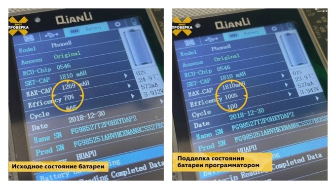 Перекупщики нашли новый способ нажиться на доверчивых покупателях айфонов. Все чаще старые смартфоны выдают за новые, "скручивая пробег" батареи с помощью специального оборудования. Об этом сообщает "Shot Проверка".
