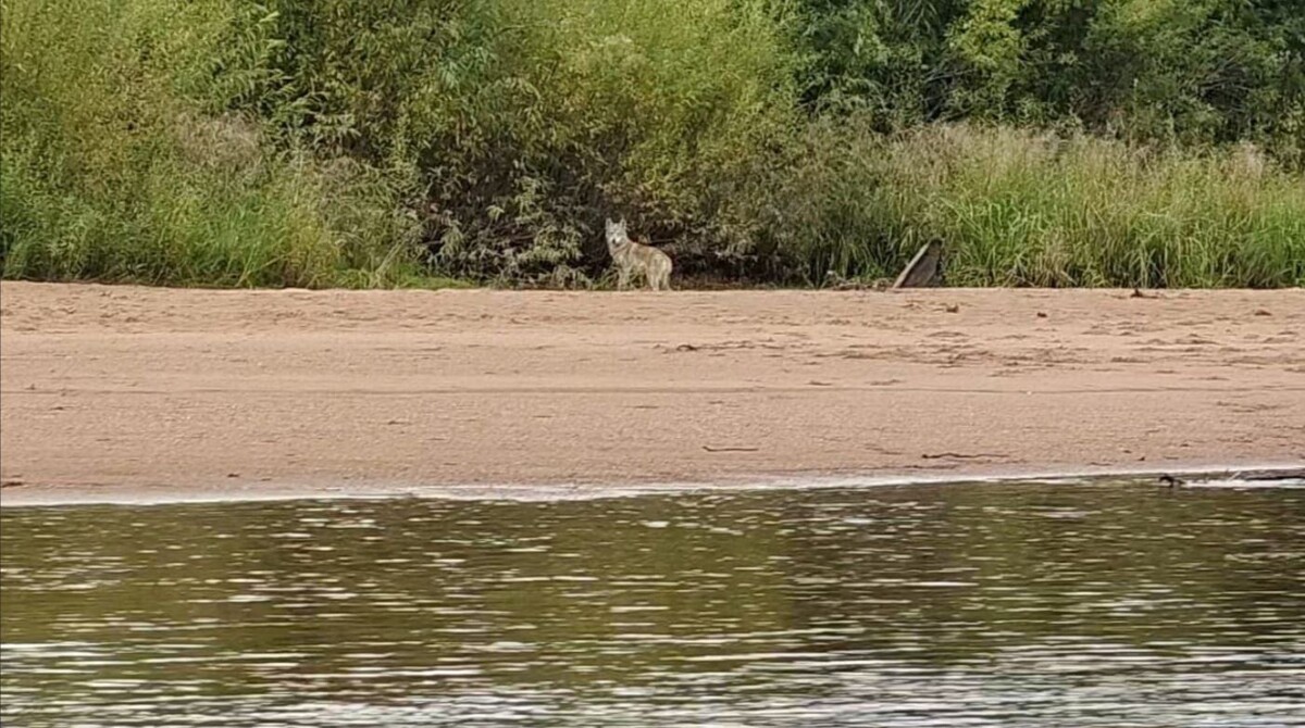 Охотоведы сняли волка на берегу реки Ульма во время планового рейда по территории. Его заметили на территории Ульминского заказника Мазановского округа.