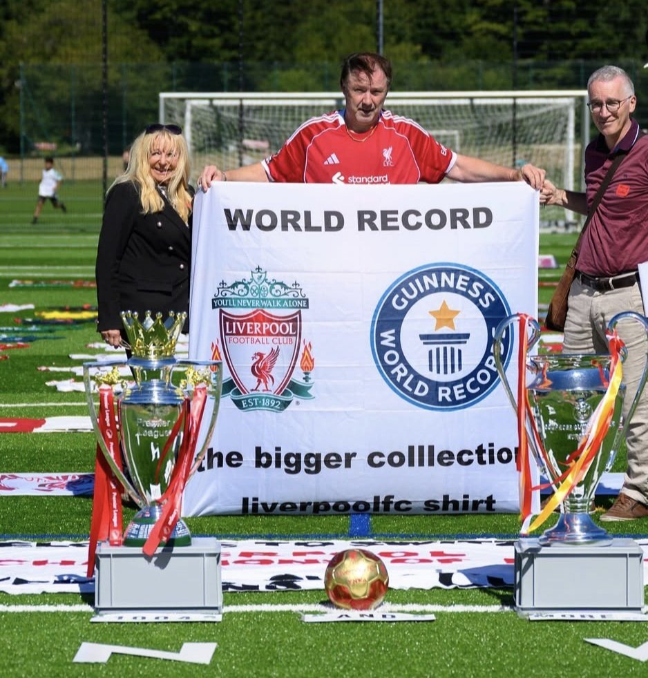 📸 Фанат установил мировой рекорд по количеству футболок «Ливерпуля». Его коллекция заняла треть поля 🤯