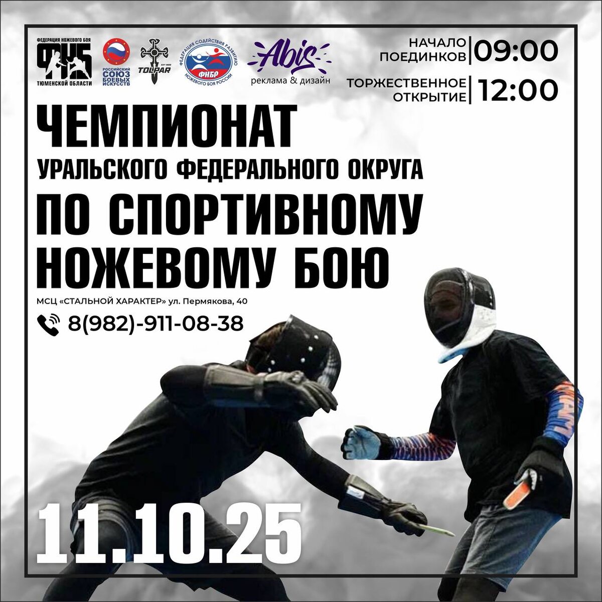 ⚔️ЧЕМПИОНАТ УРАЛЬСКОГО ФЕДЕРАЛЬНОГО ОКРУГА ПО СПОРТИВНОМУ НОЖЕВОМУ БОЮ 2025 ⚔️ 📅 11 октября пройдут грандиозные соревнования, которые соберут лучших спортсменов не только из УрФО, но и со всей страны! 🏆 Категории: • Мужчины — ростовые, абсолютная и командная категории • Юниоры — абсолютная категория • Девушки — абсолютная категория Это уникальная возможность продемонстрировать свои навыки, мастерство и спортивный дух в одной из самых захватывающих дисциплин! 📍 Место проведения: Мультиспортивный центр «Стальной характер» ул. Пермякова, 40 ⏰ Старт соревнований: 09:00 📞 Информация и регистрация: +7 982 911 08 38 (Роман Тимофеев, руководитель филиала) 🤝 Организаторы: • Федерация ножевого боя Тюменской области • Школа спортивно-прикладного ножевого боя «Толпар» • Федерация содействия развитию ножевого боя России ✨ При поддержке: Российский союз боевых искусств и Фонд поддержки спорта 🔔 Следите за новостями: ВКонтакте ФНБ Тюменской о1бласти ВКонтакте "Толпар" Тюмень Telegram "