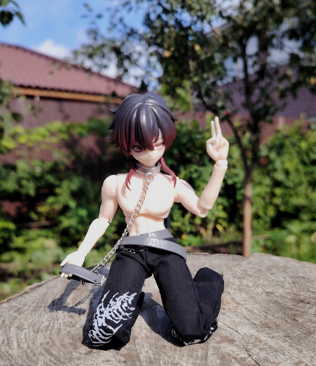 Для этого фото я надела на него часть его родного ауфита: штаны и поводок (мне не очень понятно назначение этого предмета). Надела, сфотографировала и тут же сняла: пишут, что родная одежда сицилийцев окрашивает тело.