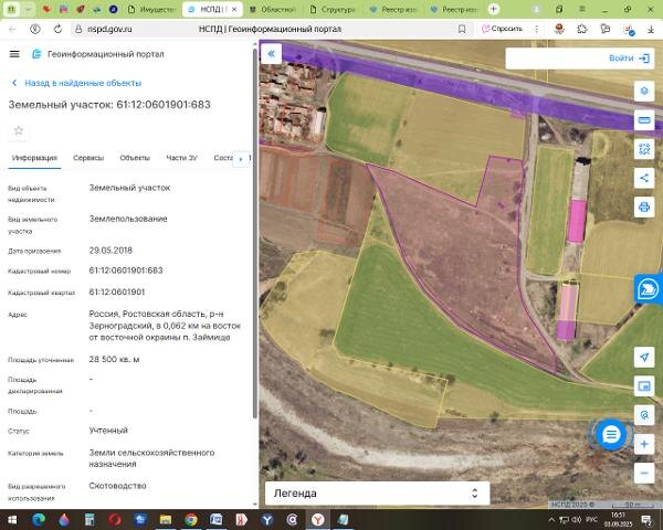 Название: Участок не находится под арестом, свободен от любых прав и претензий третьих лиц, относится к земельным участкам, государственная собственность на которые не разграничена Канал: Госземля Ростовская область Область: обл Ростовская Район: м.р-н Зерноградский Населенный пункт: с.п. Гуляй-Борисовское, п Займище в 0, 062 км на восток от восточной окраины п. Займище Локация: Смотреть на карте ВРИ: Скотоводство Кадастровый номер: 61:12:0601901:683 Кадастровая стоимость: 498465.00 Вид сделки: Аренда Площадь: 28500 м² Начальная цена: 19938.00 руб. Дата завершения: 17.09.2025 Подробнее: ГИС ТОРГИ #госземля #земляотгосударства #земля #земельныйучасток #земельныеторги #торги #аукцион #арендаземли #аренда #ростовскаяобласть