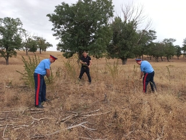 В рамках системной работы по противодействию наркоугрозе казаки Ремонтненского юрта регулярно проводят рейды и профилактические мероприятия на территории района. Одним из ключевых направлений этой деятельности является уничтожение очагов дикорастущих наркосодержащих растений, которые могут стать источником беды для молодежи и всего населения.