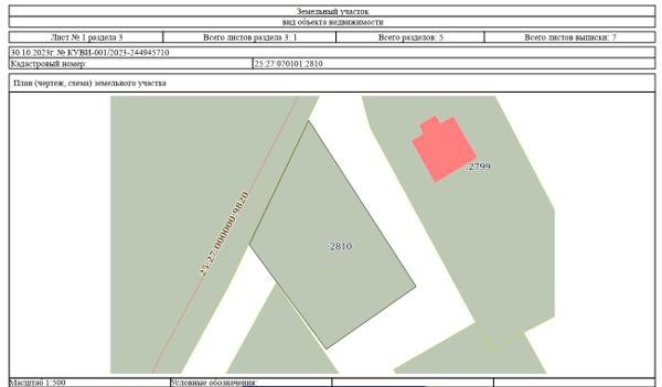 Название: земельный участок из земель населенных пунктов с кадастровым номером 25:27:070101:2810, площадью 790 кв.м., расположенного по