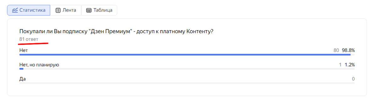 Какой вывод делаем? Да фактически из 81 человека за Премиум подписку платить готовы 1 человек. И то это еще не 100% что человек оплатит.
