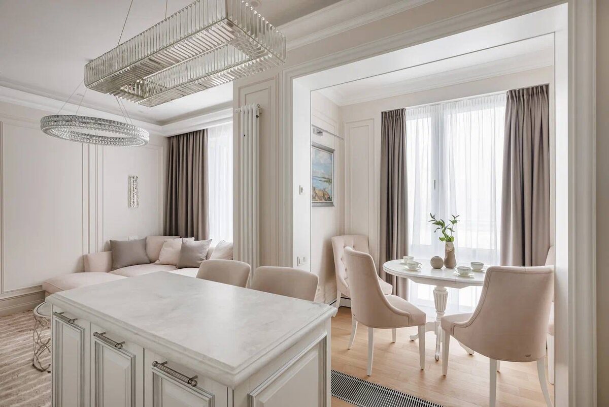 ЖК «Квартал на набережной NOW» Для обеденной зоны были подобраны стулья Ева, которые отличаются элегантностью и изяществом. Для барной стойки выбрали стулья полубарные Ева, которые являются уменьшенной версией стульев Ева. Стулья полубарные Ева имеют такой же дизайн и материалы, как и стулья Ева, но имеют более низкую спинку. В гостиной мы установили угловой диван Бронкс, который отличается современным дизайном, комфортом и функциональностью. В первой спальне разместили кровать Винтаж, которая создает атмосферу уюта и романтики. Кровать имеет изящное мягкое изголовье и деревянный каркас. Для туалетного столика подобрано кресло Альто, высокая спинка и подлокотники обеспечивают максимальный комфорт и подчёркивают характер помещения. Кровать Винтаж 2 создаёт настроение во второй спальне. Изголовье данной кровати имеет более контурную форму и декорировано мебельными гвоздиками. В зоне туалетного столика второй спальни стоит кресло Юник, с высокой спинкой и подлокотниками. Диван-кро