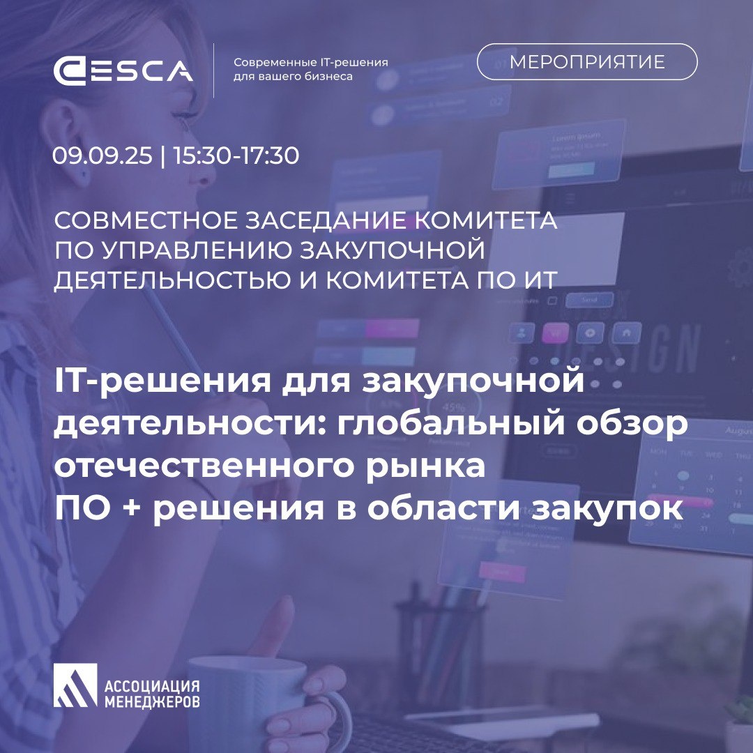Ассоциация Менеджеров приглашает на совместное заседание комитета по управлению закупочной деятельностью и комитета по информационным технологиям. Тема: «IT-решения для закупочной деятельности: глобальный обзор отечественного рынка ПО + решения в области закупок». Мероприятие состоится 9 сентября 2025 года с 15:30 до 17:30 в отеле Mercure Москва Павелецкая. В фокусе дискуссии — ответы на ключевые вызовы: ▪️ Анализ российских IT-решений на фоне ухода международных вендоров. ▪️ Автоматизация управления поставщиками и данными в соответствии с 223-ФЗ. ▪️ Повышение прозрачности и снижение издержек через цифровизацию. ▪️ Выстраивание стратегических отношений с поставщиками на специализированных платформах. В качестве модератора выступит Виктор Симоненко, председатель комитета по управлению закупочной деятельностью, Ассоциация менеджеров; заместитель генерального директора, электронная торговая площадка Росэлторг. Со-модерацию проведут Максим Черноусов директор по развитию, Ассоциация мен