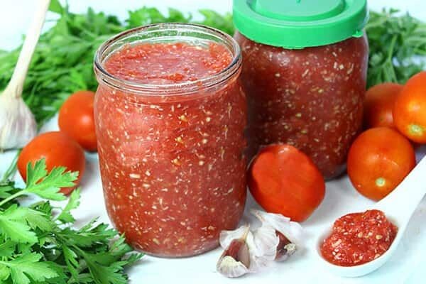 Традиционная русская заправка для гарниров и мясных блюд! Хреновина из помидор – один из самых любимых национальных соусов России. А можете ли вы представить себе холодец без хреновины? Я – не могу. Русская душа обязательно потребует остренького соуса к этим блюдам. Особенно оценят такую закуску любители остренького, добавляя ее и к мясным блюдам, пельменям. Многие ее настолько сильно любят, что просто выкладывают на хлеб. Готовится хреновина легко, а удовольствия приносит много. Вдобавок, хреновину можно закатывать в банки на зиму. Поверьте, закуска - просто обалденная! Что же для этого нужно? Время приготовления: 90 минут Количество порций: 1 Хрен прокручиваем через мясорубку, предварительно почистив и порезав на куски помельче для легкости прокручивания. У меня для этого старая ручная мясорубка. Помидоры с чесноком пропускаем через мясорубку (использую уже электрическую). Всё соединяем в одной чистой миске, добавляем сахар, соль, лимонку. Размешать. Дать постоять полчасика, ещё раз