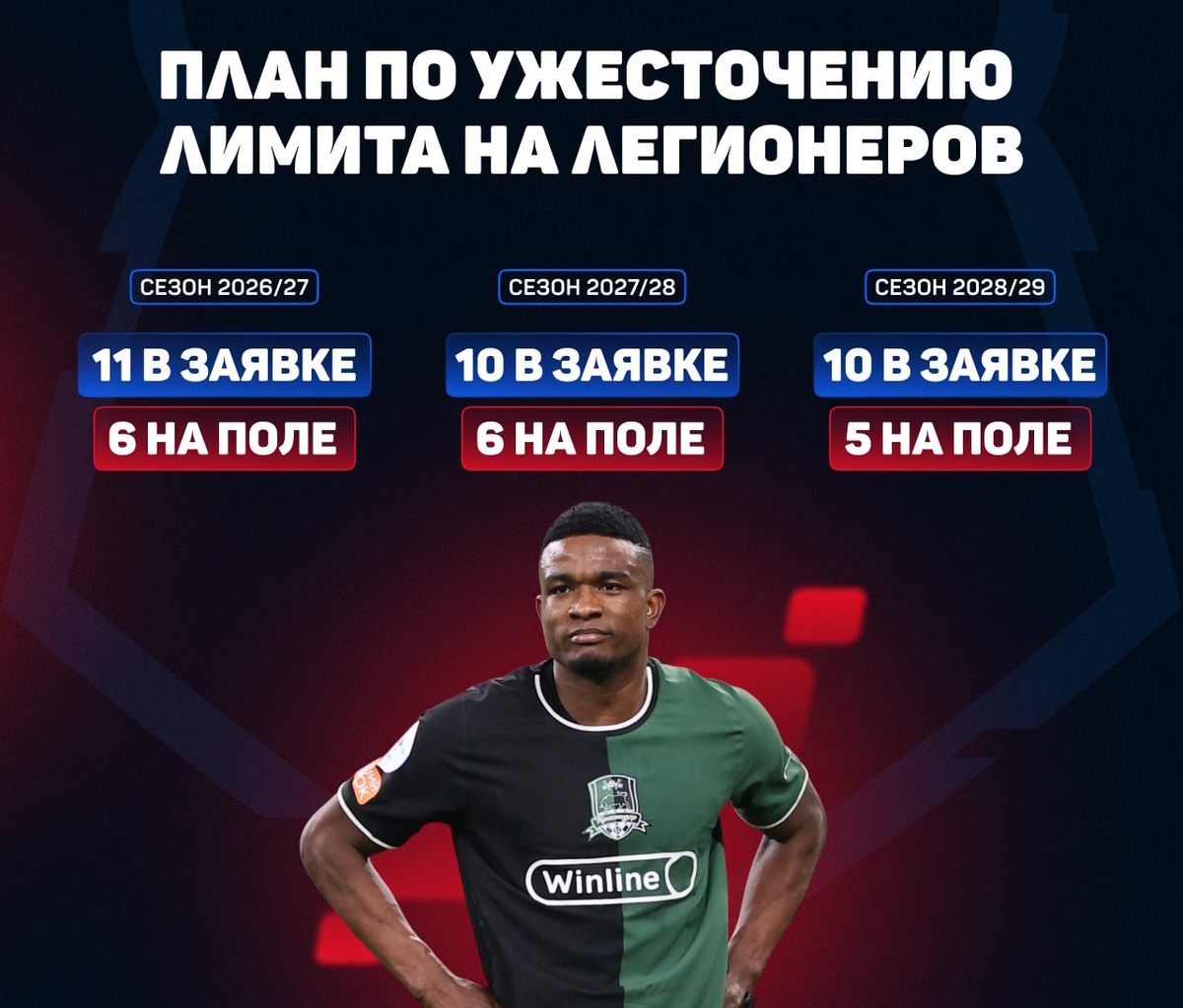 Утверждён план ужесточения лимита на легионеров в РПЛ, начиная с сезона-2026/27: уже со следующего сезона клубы смогут заявлять на сезон максимум лишь 11 иностранцев, 6 из которых смогут одновременно находиться на поле. С сезона 2027/28 – 10 в заявке, 6 на поле. С сезона 2028/29 – 10 в заявке, 5 на поле. И так насовсем. Сейчас в РПЛ можно заявить 13 легионеров, из которых 8 могут быть на поле одновременно. В приятное дополнение было заявлено, что отечественные производители должны читать книги и духовно расти. Цитировать это не будем, потому что не только смешно, но и немного страшно. Как и за "Зенит", который взял моду выходить на поле с единственным россиянином на воротах. Мы неоднократно писали в том числе и хорошее про академию "Зенита", где пропадают ценные воспитанники вроде супербомбардира Акима Белохонова. Или ныне зажигающего в "Спартаке" Дмитриева, которого уже всё болотное братство называет воспитанником питерского футбола. Или буквально на днях ушедшего в "Рубин" капитан