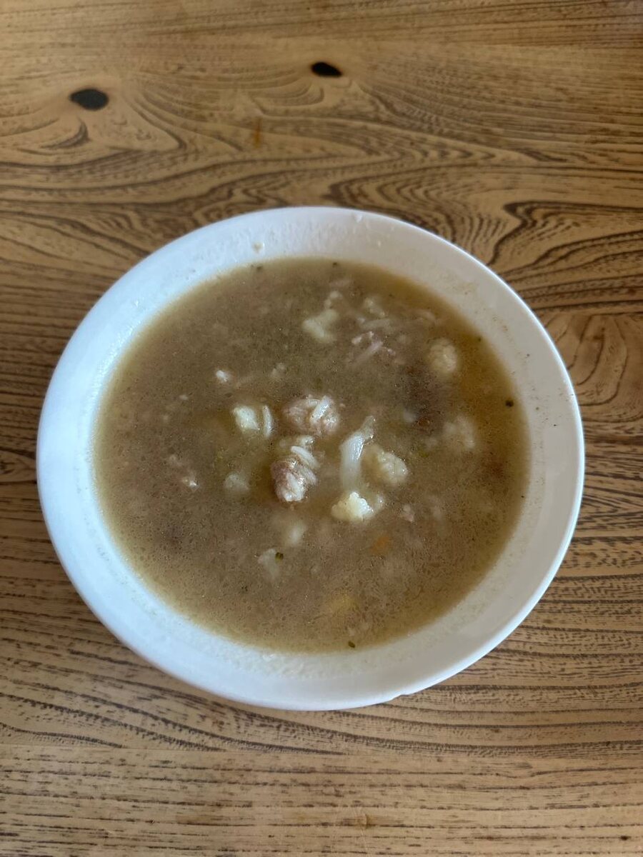 Обед- суп. 🍲 Костный бульон Цветная капуста и брокколи Кукуруза Картошка Морковь Кабачок Тефтели( фарш+рис) 📝Еще раз про бульон! Если ваш суп сварен на воде или овощном бульоне, то ваш супчик транзитом проходит через ЖКТ. Принцип попили водички. Всасывание происходит в тонком кишечнике, костный или мясо-костный бульон-это источник коллагена и аминокислот. Этот бульон отлично работает со слизистыми, заживляя их. ✏️Я варю такой бульон 1 раз в 2 дня, в кастрюле 8 л. Делю пополам и на 2 дня суп готов. Правда иногда он заканчивается быстрее 🤭. 📝В такой бульон вы можете добавлять любые овощи, крупы и т д. Все по желанию. Как вы варите обычный суп. Если вам много бульона, вы можете его заморозить, но аккуратно тем, у кого много гистамина в крови. 📝Малышей на прикорме, тоже приучайте кушать такие супы, это отличный способ быстро накормить ребенка и даст вам время, например с прогулки приготовить основной прием пищи. #прикорм #суп #еда #мама #важностьбелка #белок #дети #вводприкорма