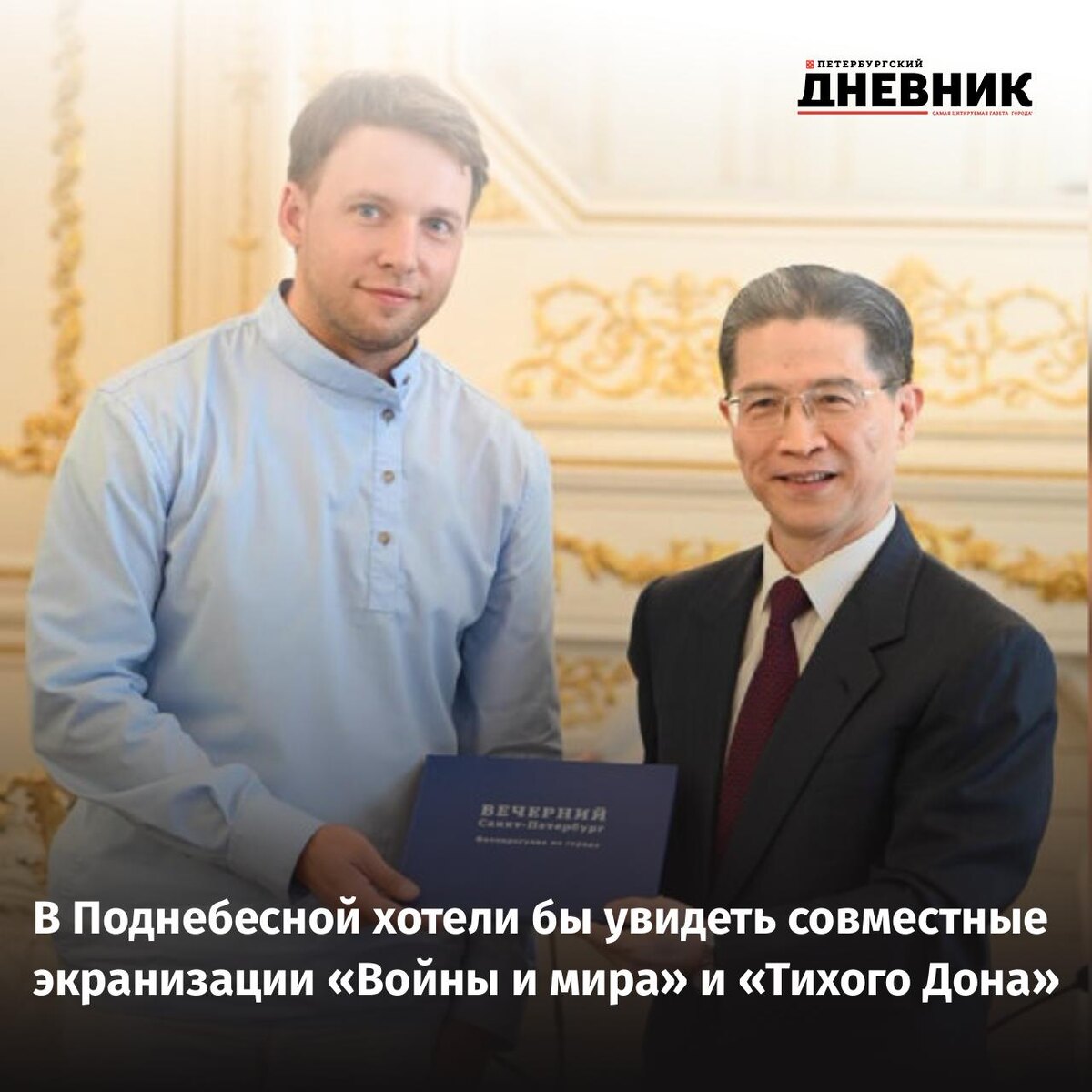 Главный редактор «Петербургского дневника» Кирилл Смирнов обсудил проблемы сотрудничества в сфере кинопроизводства между Россией и Китаем с членом Постоянного комитета Всекитайского собрания народных представителей, председателем Ассоциации публичной дипломатии Шанхая Чжоу Ханьмином. Кирилл Смирнов напомнил, что накануне президент РФ Владимир Путин на своей вечерней пресс-конференции отметил, что идея такого совместного кинопроизводства принадлежит лидеру Китая. «По словам российского лидера, такое кинопроизводство уже активно идет и развивается. Видите ли вы будущее у такого совместного производства России и Китая? И может ли оно стать достойной альтернативой американскому кино, которое доминирует сейчас в мире?» — поинтересовался Кирилл Смирнов. Чжоу Ханьмин подчеркнул, что сотрудничество между Китаем и Россией является всесторонним, в том числе в сфере культуры и производства фильмов. «Мы стараемся быстро развиваться, и для нас это большая честь. Мы настроены на перспективное сотруд