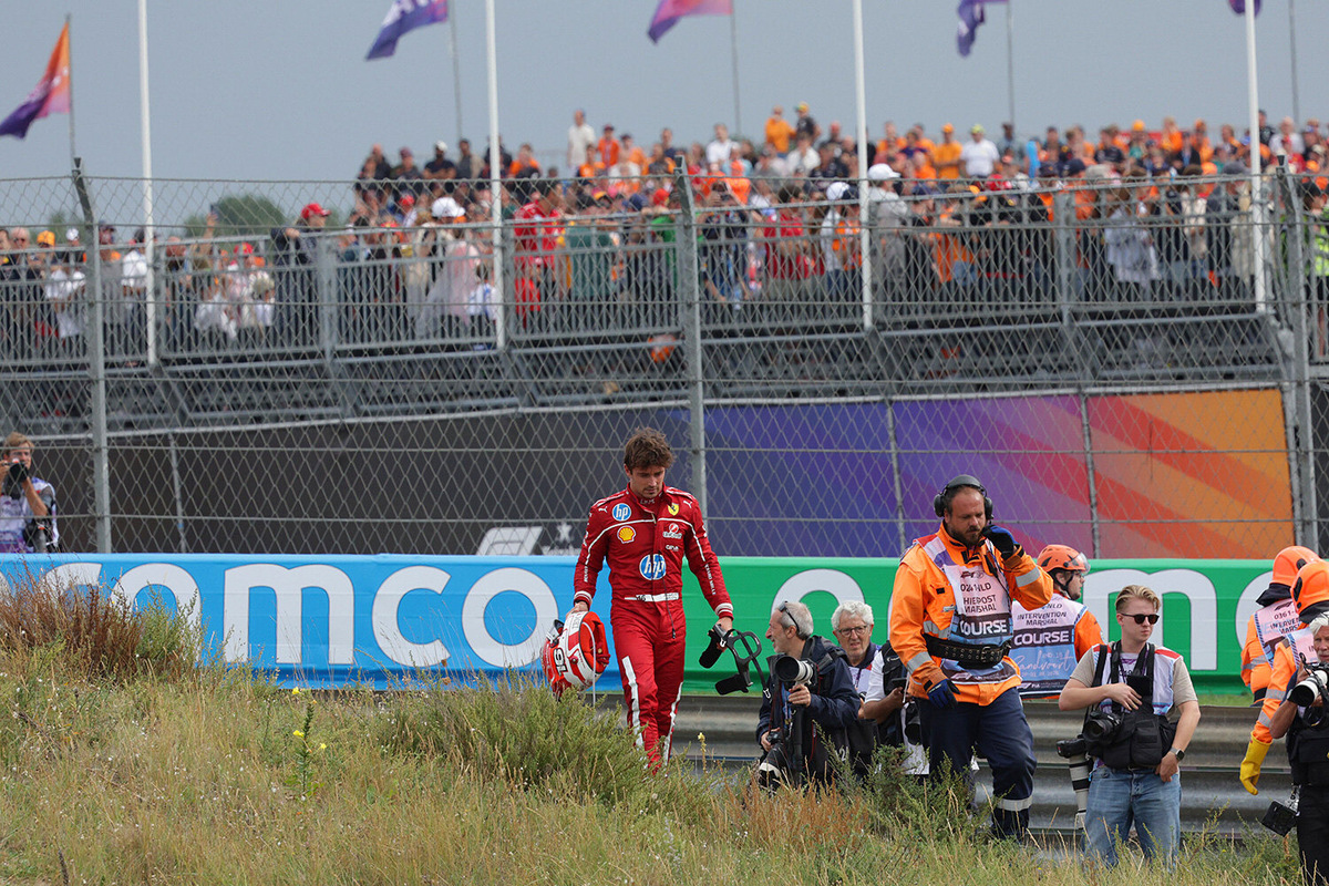 На Гран-при Нидерландов Шарль Леклер снова в одиночку тащил «Феррари» к очкам, безумно прорвался сквозь Джорджа Расселла, но был подбит его напарником по «Мерседесу» – новичком Андреа Кими Антонелли. И очень красиво страдал рядом с трассой, наблюдая за более удачливыми коллегами. А позже сам выложил фотографию, словно упиваясь драмой. Чего не отнять у Шарля и «Феррари», так это эстетики трагического. Таким Леклера мы видели сотни раз, это классический, узнаваемый образ для книг будущего о «Формуле-1» первой половины XXI века. Вот драма монегаска после схода во Франции в 2022-м. А вот совсем свежий образ – с недавнего Гран-при Венгрии. Так выглядит 17-й подряд год Скудерии без титулов. Но знаем мы и другого Шарля – на победном подиуме Гран-при Италии-2024. Это король итальянских сердец, которого ласково называют «Карлетто», в которого верят. Он свой, родной – пилот, свободно говорящий на их языке, символ Маранелло. Это фото также войдет в историю – когда и если Леклер и Скудерия наконец