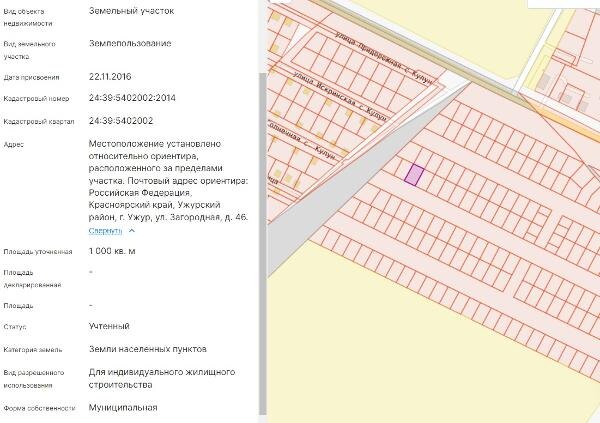 Название: Земельный участок с кадастровым номером 24:39:5402002:2014 площадь 1000 по адресу Российская Федерация, Красноярский край