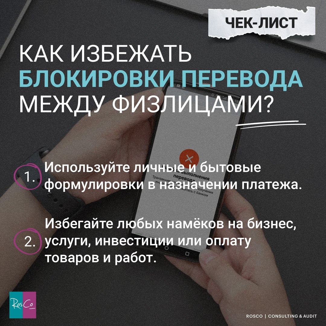 ⛔️ Как избежать блокировки перевода между физлицами? #чеклист