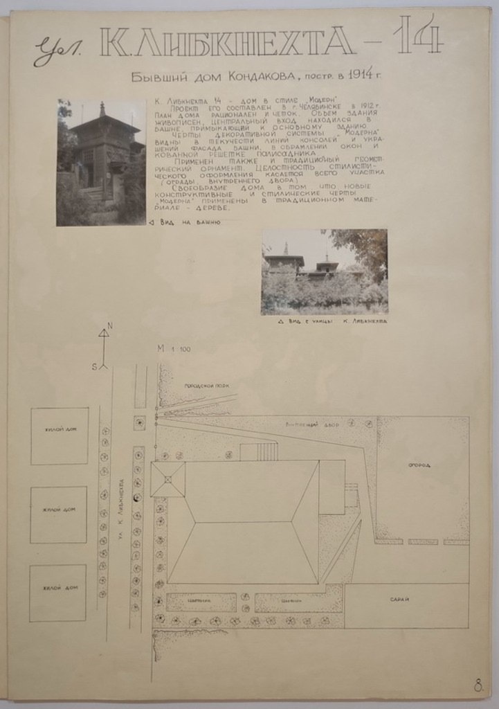 1979 / г. Шадринск. Церкви и усадьбы. Материалы обмерной практики. Листы 8-9. Бывший дом Кондакова, ул. Карла Либкнехта, 14