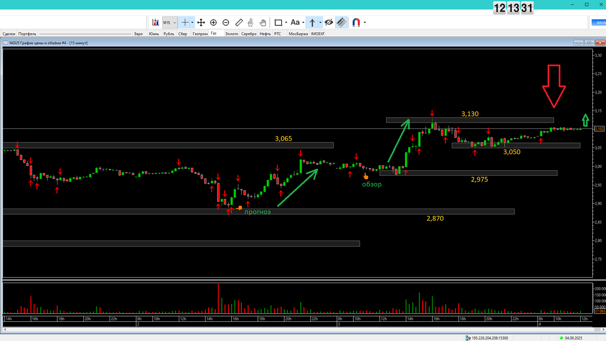 Итак, рынок вчера пошёл по плану (А), который был намечен в утреннем обзоре https://t.me/treydingnenaslovah/3471. Обновил локальное сопротивление 3,065 и подрос в итоге к уровню 3,130. После чего скорректировался в зону 3,050 и снова возобновил рост. На графике видно, что в этом диапазоне активно проходили, как покупки, так и продажи Исходя из текущей ситуации, вполне вероятно, что цена поднимется ещё выше. В то же время нельзя игнорировать ликвидность со стороны медведей, которые активно и перманентно сдерживают этот рост Резюмирую. В моменте цена скорее всего подрастёт выше, однако работа от лонга на фоне медвежьего сопротивления сопровождается повышенными рисками, потому что рынок в любой момент может отработать как минимум локальный шорт 👉 Предыдущий пост https://t.me/treydingnenaslovah/3469 #NG #NGU5 #NG1