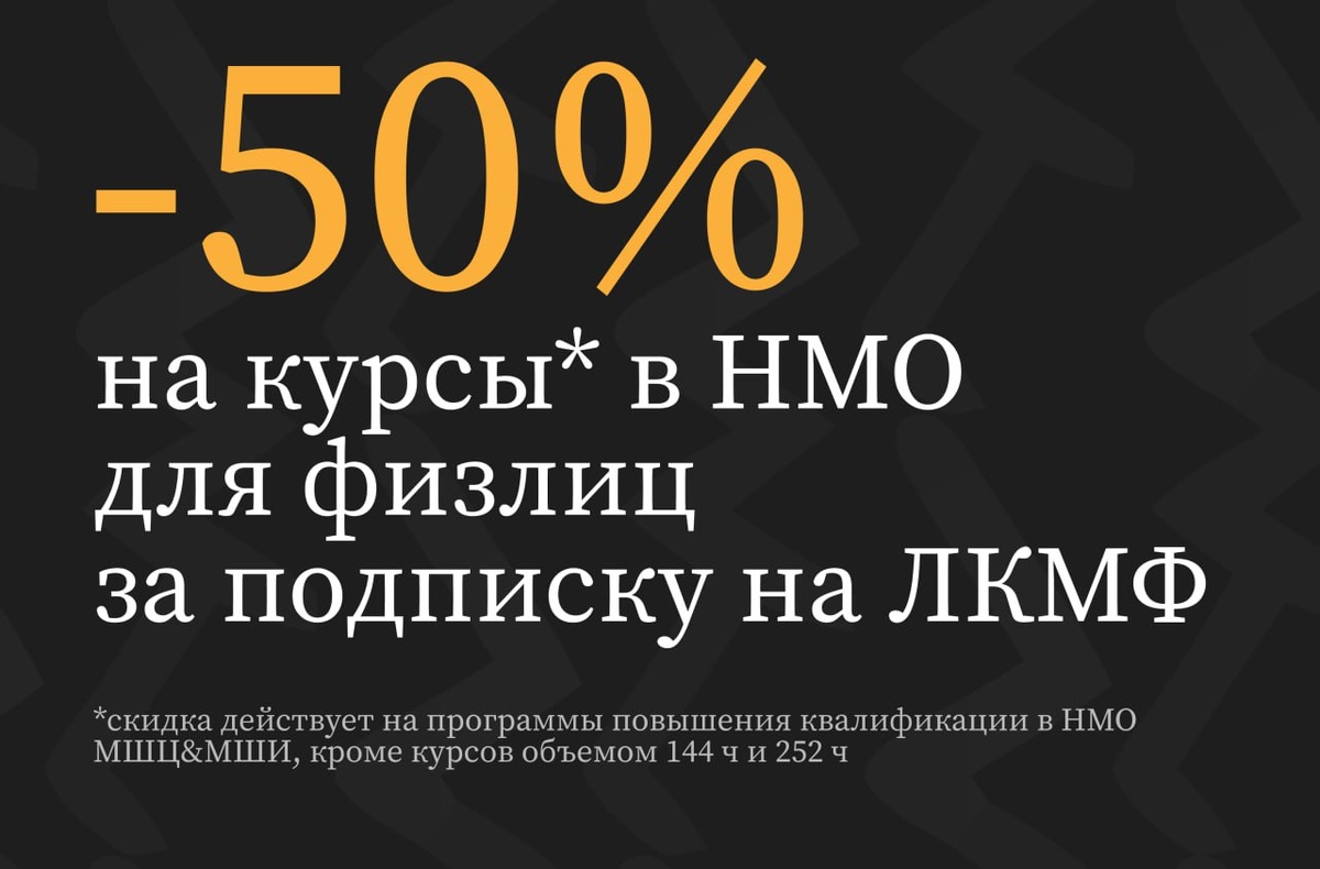 Дарим скидку 50% физлицам на курсы в МШЦ&МШИ за подписку на журнал ЛКМФ! Скидка действует на все курсы, кроме 144 ч и 252 ч. ➡️ Условия получения скидки: 1️⃣ Наличие подписки на журнал ЛКМФ на второе полугодие 2025 г. 2️⃣ Подача заявки на обучение до 30 сентября 2025 г. 3️⃣ Внесение оплаты от физического лица. Подробности и полный список курсов со скидкой доступен по ссылке: ➡️ ssc-school.com/Курсы-со-скидкой