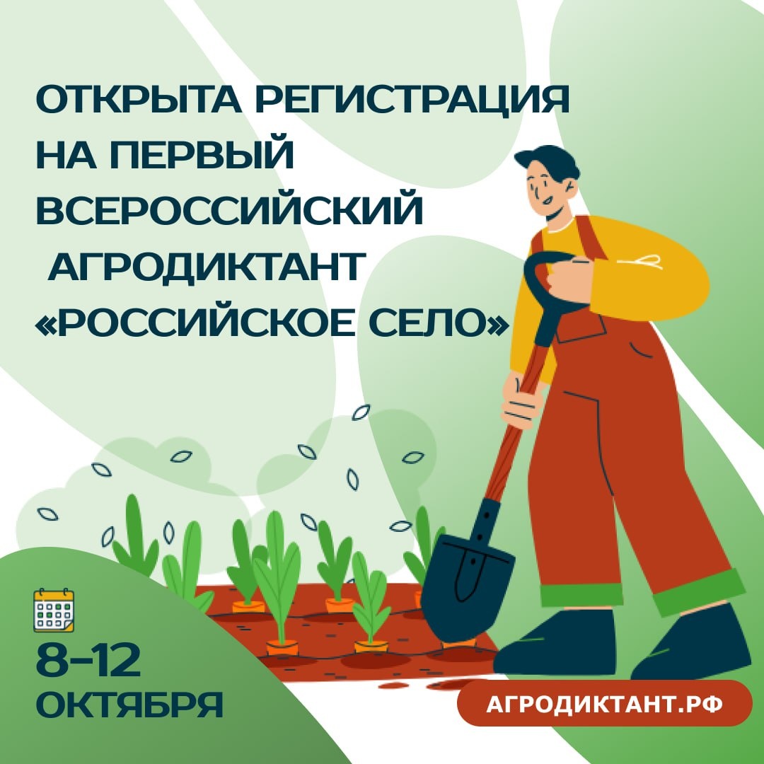 С 8 по 12 октября пройдёт первый Всероссийский агродиктант. Регистрация уже открыта на сайте агродиктант.рф. Ожидается, что участие примут более миллиона человек на более чем тысяче площадок по всей стране. К диктанту подключатся школы, вузы, предприятия агропромышленного комплекса, региональные отделения Россельхозбанка и культурные центры. Акция направлена на популяризацию знаний о сельском хозяйстве и повышении интереса молодёжи к аграрной сфере.