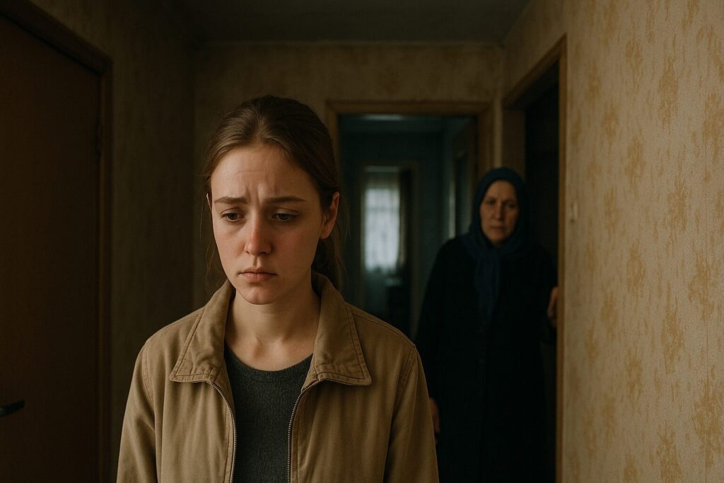 Коридор в старой хрущёвке всегда был узким, но сейчас он казался Алине бесконечным тоннелем без выхода. Мать стояла у двери, раскинув руки, с собственными страданиями. В полумраке её фигура отбрасывала длинную тень, которая тянулась до самых ног Алины.