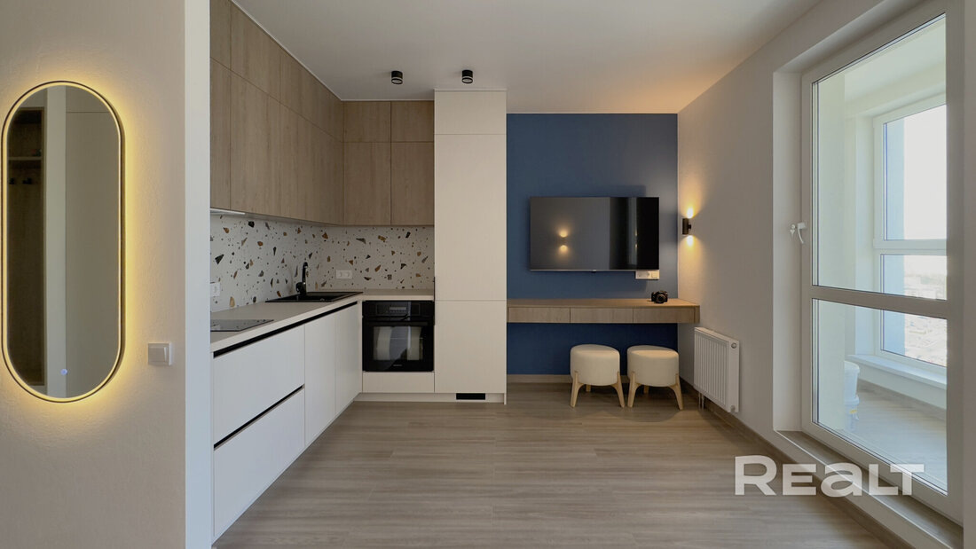 Подобрали пять студий с ремонтом в Минске. Они находятся в разных ЖК, в том числе «Минск-Мир» и «Новая Боровая». Эти квартиры реально купить, имея на руках 25 тысяч долларов. Для этого нужно воспользоваться лизингом. Просчитать условия можно в каждом конкретном объявлении, а оставить заявку на оформление лизинга — по вот этой ссылке. Показываем студии. 16-этажный дом на Рыбалко, 7 является частью «Антоновского квартала». Он был построен в 2021 году. На девятом этаже тут продается студия в 25,8 м². Рядом находится парк, в пределах 10 минут — Партизанский проспект. В другой стороне — станция метро «Пролетарская», до которой также можно дойти пешком. Жилье полностью готово к проживанию. Тут установлен кухонный гарнитур, имеется вся бытовая техника, включая кондиционер. Во всей квартире на полу уложена плитка с подогревом. Санузел — совмещенный. Студия идет с застекленной в пол лоджией. Везде установлены пластиковые стеклопакеты. Продается квартира в микрорайоне Новая Боровая. Она находитс