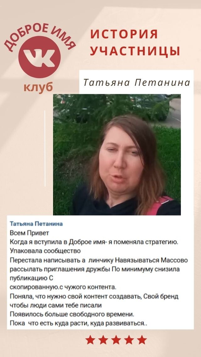 Как сделать так, чтобы люди сами писали? История Татьяны, которая смогла💪 Ещё полгода назад Татьяна Петанина писала людям первой, чувствовала отказы и поверила, что так и должно быть. Ее страница больше отталкивала, чем работала на неё. А когда пришла к нам в клуб 🌈Доброе Имя, Татьяна поменяла стратегию. Она начала делиться тем, что интересно ее аудитории. Перестала навязываться и начала ПРИТЯГИВАТЬ🧲 👍🏻А это значит, что её Личный бренд стал работать на неё. Теперь люди находят ее сами. Пишут. Спрашивают. Хотят к ней. 👇👇👇 В клубе 🌈«Доброе Имя» вы получите готовую систему работы ВКонтакте через Контент и Личный Бренд + нашу помощь и поддержку. ✅ Идеи ✅ Разборы ✅ Силу команды. Вы больше не одна! Дружба, поддержка и общие победы ♡ 🖐Успейте войти в нашу дружную команду до ✨5 сентября! ❤️Сейчас самое время рвануть! А вместе это делать втройне приятнее! 🫶 🍂Нравится такой план на осень? ❓А вы развиваетесь в ВКонтакте? Или только в ТГ сидите?