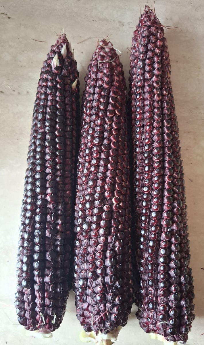 Сняла очередную кукурузу, необычный гибрид. Не могу найти ни пакетик от семян, ни заказ, так что не помню точно, но это то ли Красотка, то ли Чёрное Золото от Аэлиты. В пакетике было 5 семян, взошли на моё удивление все. В какой-то момент рассаду я засушила, после с помощью конуса для луковичных высадила эти высохшие волосинки с живыми корнями - и они все прижились! Да как пошли в рост! Кукурузе видимо понравилась прохладная дождливая погода. В общем, эти гибриды спеют чуть позже, основную часть урожая я уже сняла, теперь срезала и эти початки, но рановато вышло, надо было им ещё недельку дать. Початки у них очень толстые, прям отличаются от обычных сортов. И вкус. Она не сахарная, но видимо краситель даёт ещё и оттенок вкуса - мне прям очень понравилась! Очень-очень вкусная варёная. Кстати, вода после неё тоже почти чёрная, как и сами початки. А тут к моему сожалению пересорт😒 Взяла ещё необычный гибрид Граффити, должна была быть с разноцветным зерном, жёлтым с фиолетовым-красным. Но