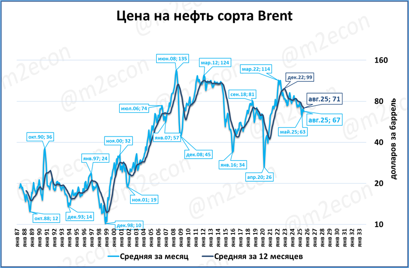 Средняя цена нефти Брент в августе составила 67 долларов за баррель.