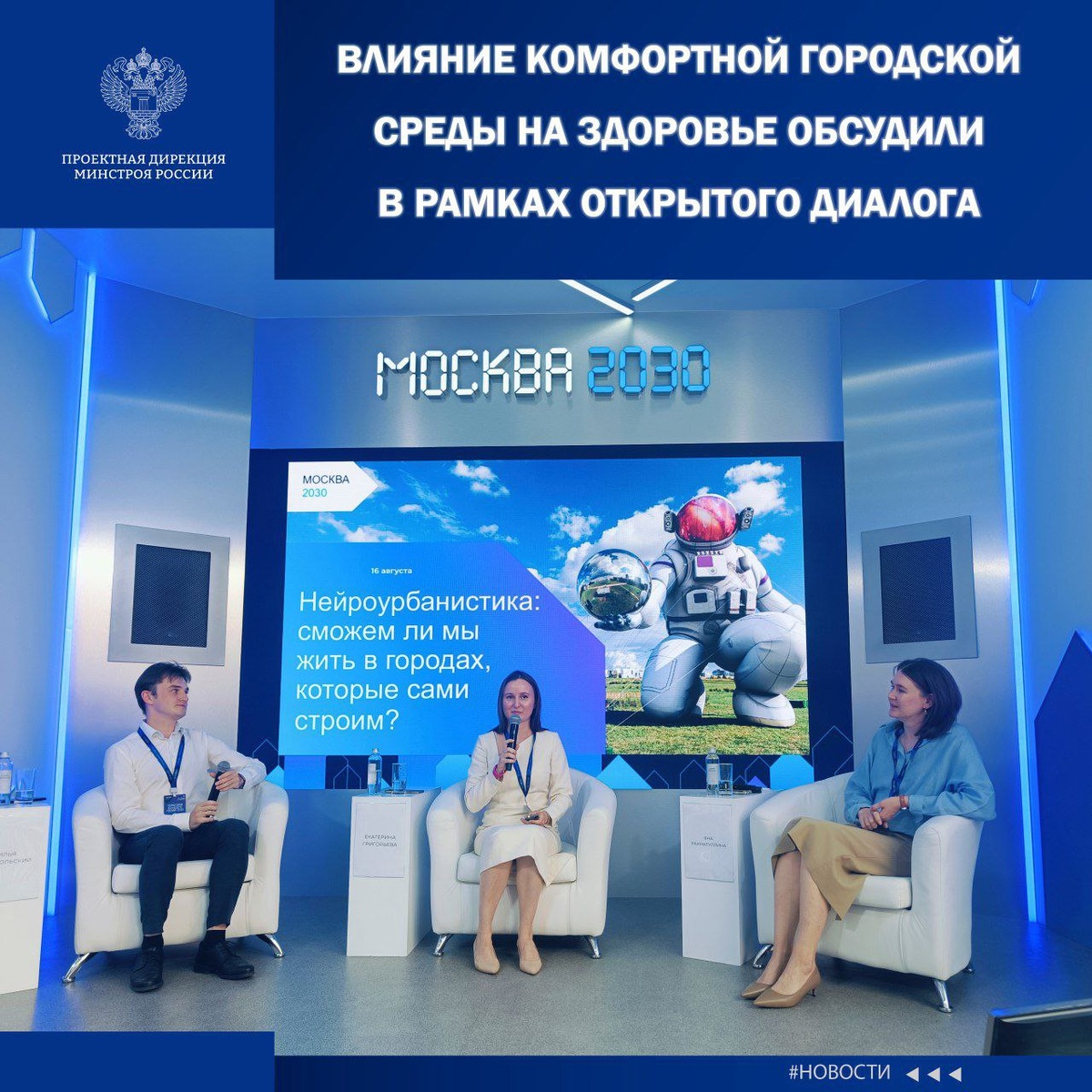 Открытый диалог «Нейроурбанистика: сможем ли мы жить в городах, которые сами строим?» прошел в новом кампусе МГТУ им. Н.Э. Баумана 16 августа. Перед аудиторией выступила Екатерина Григорьева – начальник отдела мониторинга и взаимодействия с регионами федерального проекта «Формирование комфортной городской среды» ФАУ «Проектная дирекция Минстроя России». Федеральный проект по формированию комфортной городской среды часто называют «самым красивым» федеральным проектом. При этом благоустройство окружающего пространства – больше, чем просто красота. Это реальный вклад в физическое и ментальное здоровье жителей. Согласно исследованию, проведенному в 2005 году российскими учеными-психиатрами, экономическая оценка потерь от психических заболеваний, которые, согласно исследованиям, более распространены среди жителей городов, в России составляет 1,3% ВВП или 272,8 миллиарда рублей.