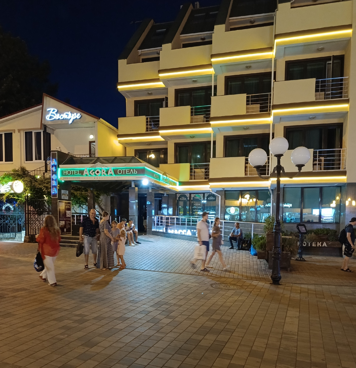 Да, этим летом побывали в Крыму в конце июля начале августа. Когда встал вопрос куда ехать, я поделилась воспоминаниями. Сказала, что была в Крыму 50 лет тому назад. Отдыхала в поселке Рыбачий в тридцати километрах от Алушты. Сын сказал: "Ну тогда поехали в Алушту". На том и остановились. Он забронировал номер в отеле "Агора".