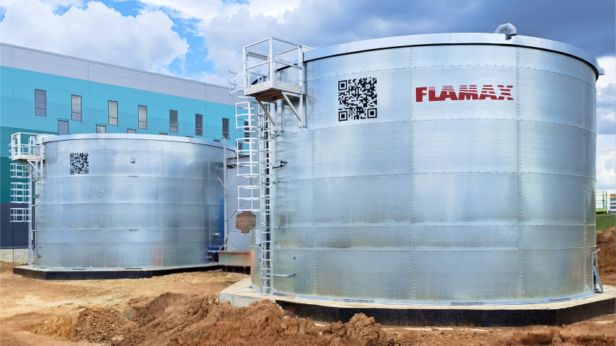 Задача была стандартной, но требующей точности. Инженеры FLAMAX спроектировали два уличных сборных резервуара объёмом по 409 м³ каждый (диаметр — 10,14 м, высота — 5,97 м). Конструкции полностью адаптированы для круглогодичной эксплуатации.