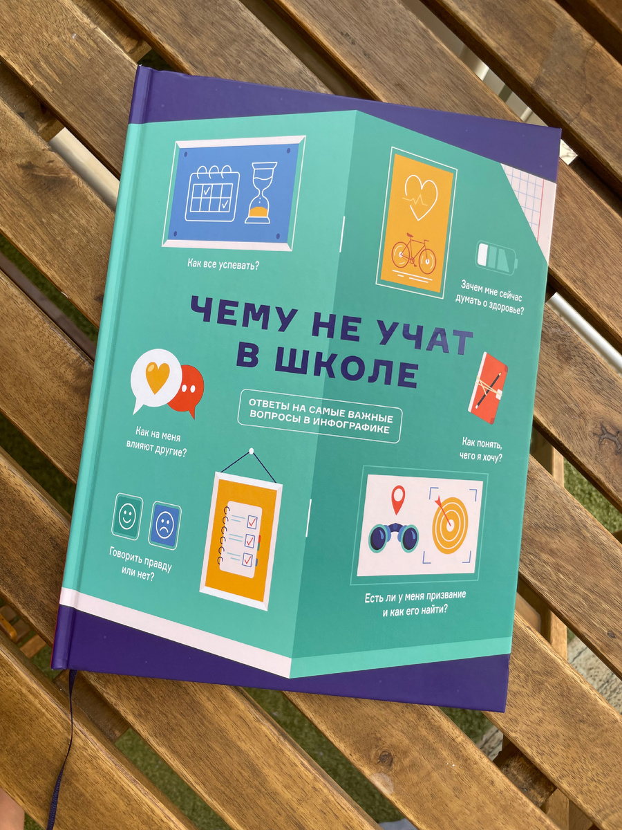 Шикарное пополнение нашей домашней библиотеки — книга-навигатор по взрослению от издательства Smart Reading «Чему не учат в школе». Это визуальный гид с ответами на самые важные вопросы, которые обходит стороной школьная программа, а часто и семейное общение. Что внутри? 6 тематических глав, в которых от и до разбираются жизненные вопросы, связанные со взрослением и становлением нас, как личностей. Например, что такое счастье, зачем люди учатся, как планировать дела, зачем нужно критическое мышление, для чего нужны друзья, какие эмоции мы испытываем, как договариваться, как услышать собеседника и множество других тем. Всё это преподнесено в виде яркой и стильной инфографики с примерами, и визуальными схемами. Язык доступный и не занудный, интересно читать и взрослым. Каждый разворот — новое открытие и новая тема для диалога с ребенком. В конце глав даются рекомендации для углубленного изучения темы: Как читаем? Сын читает сам, после обсуждаем с ним, что нового он для себя открыл, чт