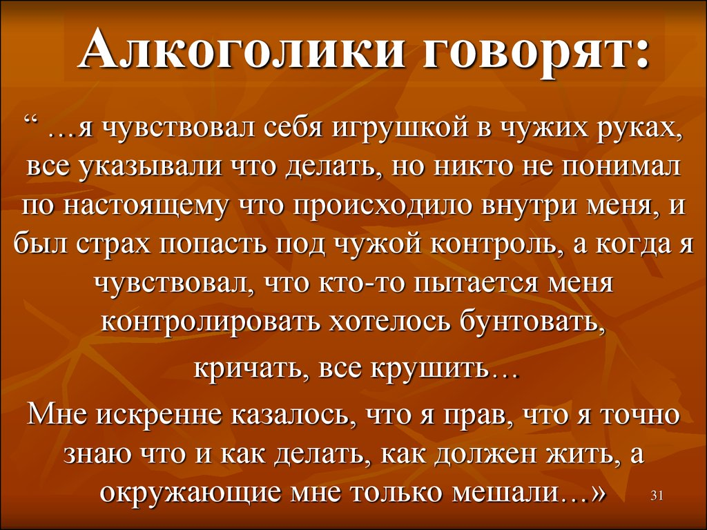 Я хотел, чтобы никто не мешал мне пить и давал пустые обещания.