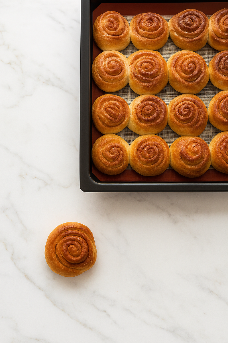 Тесто делим на кусочки по 60–70 г, формируем шарики или «улитки», выкладываем на силиконовый коврик с бортиками (артикул WB: 203240371). 5. Ставим на расстойку.