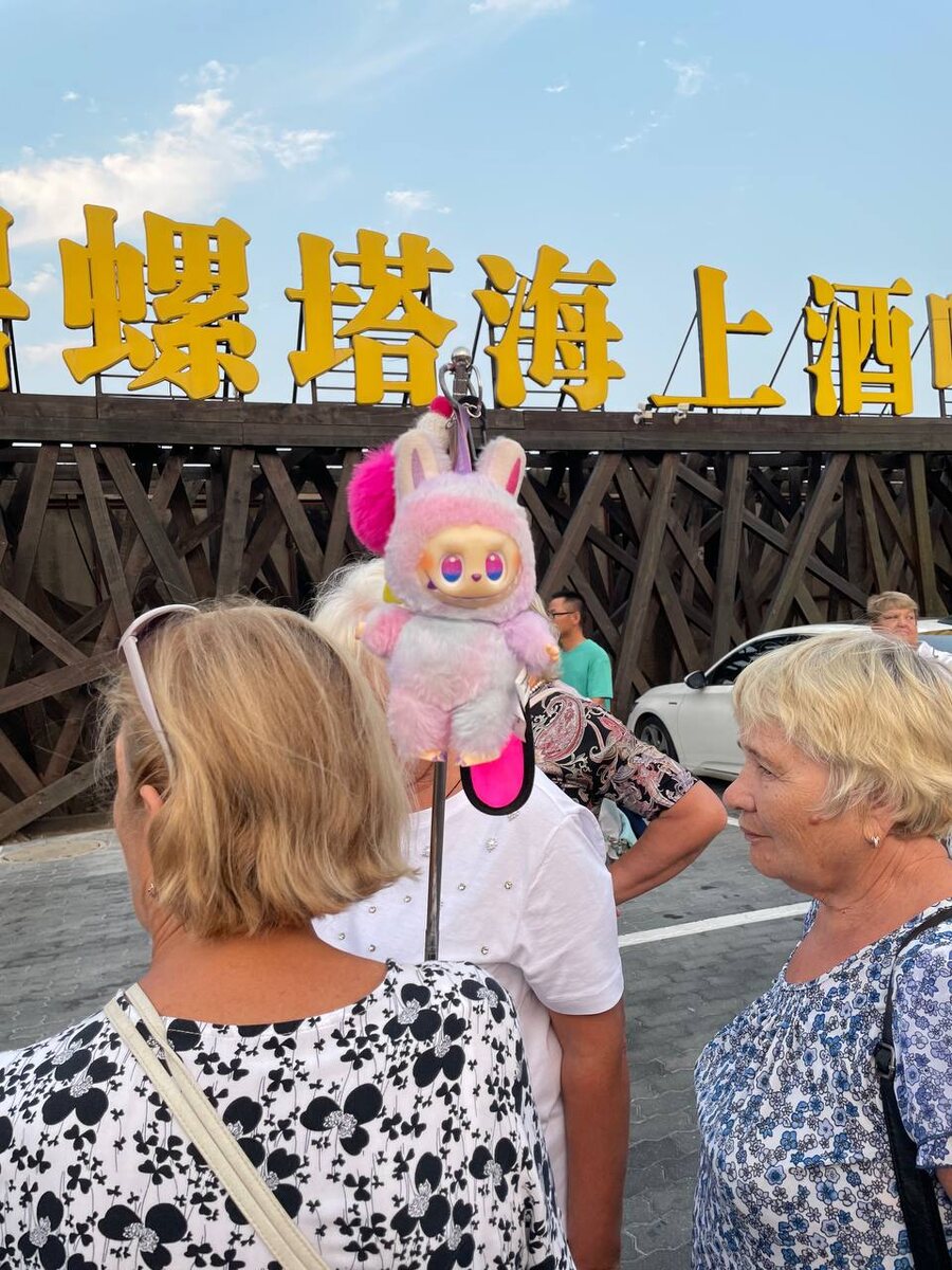 У гида флажок - лабубу, показала золотой брелок к сумке- тоже лабубу. Говорит, что сын критикует, а она ему «хорошо, когда мама модная»
